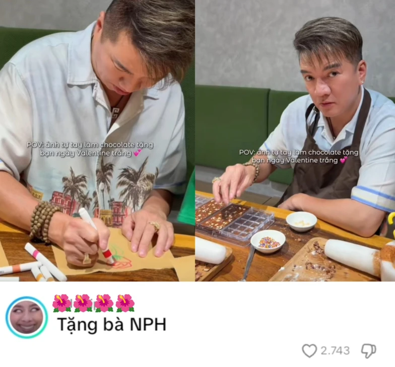 Thực tế, không hề có chuyện Đàm Vĩnh Hưng tự tay làm chocolate tặng bà Hằng để nịnh hót hay cảm ơn. Mọi chuyện bắt nguồn từ một tài khoản fan của nam ca sĩ trên TikTok khi đăng tải đoạn clip anh làm bếp với dòng trạng thái: “POV: ảnh tự tay làm chocolate tặng bạn ngày Valentine trắng”. Sự việc chỉ thực sự bùng nổ khi một cư dân mạng để lại bình luận hài hước: “Tặng bà NPH”