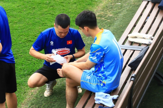 Cụ thể, tiền vệ này bị đau ở vùng bắp đùi và buộc phải rời sân sớm. Sau đó, anh được đội ngũ y tế hỗ trợ chườm đá ngay bên ngoài đường biên.